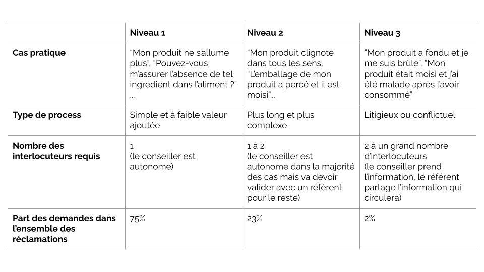 - … du niveau de l’externalisation (le niveau 3 demande, par exemple, un temps plus long, mais permet une qualité de service puisqu’il s’agit d’interlocuteurs dédiés et formés)
