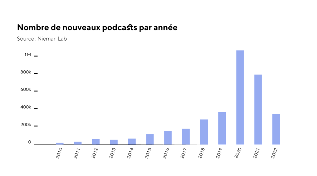 C’était l’info du début d’année. Entre 2020 et 2022, le nombre de nouveaux podcasts s’est effondré de 80%.