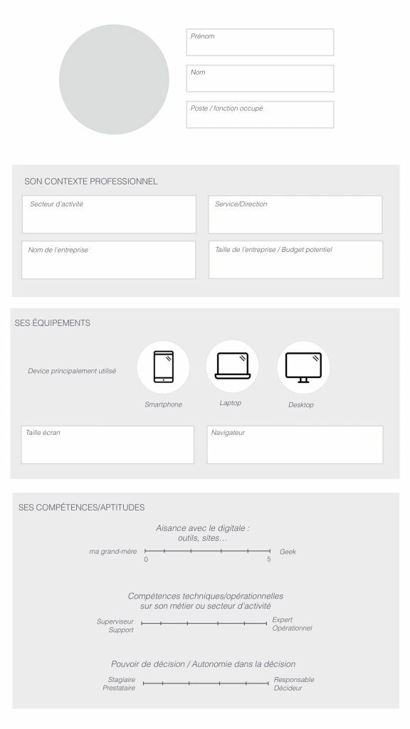 1 – la définition du profil, du contexte d’interaction avec la marque / le produit / le service et des éléments majeurs de sa personnalité