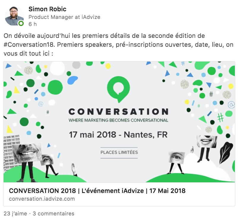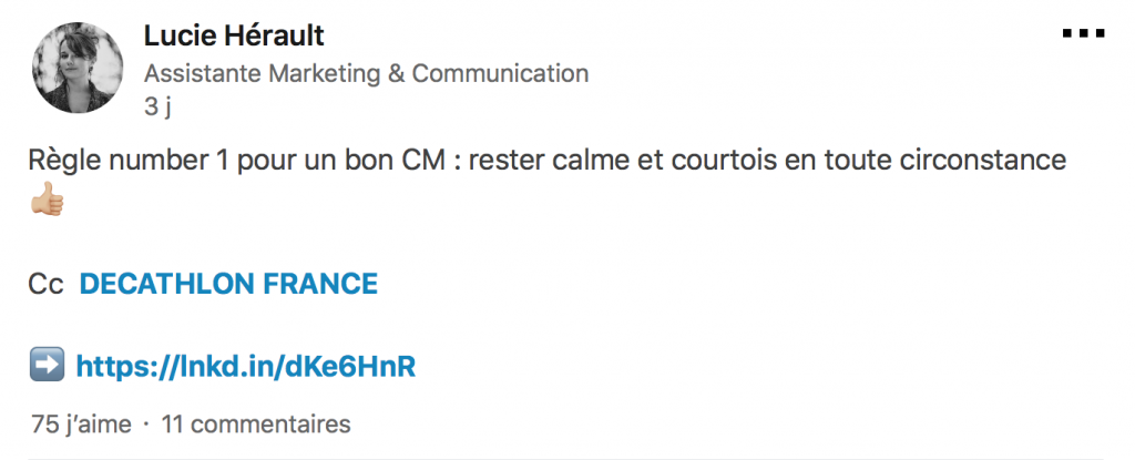 Notre conseil serait donc de reprendre le contenu, en mentionnant son auteur, plutôt que de simplement le partager. Cette fois, l’algorithme sera bien plus enclin à diffuser votre post.