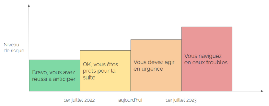 Mais le deadline approche. Plus le temps passe, plus le risque de perdre de précieuses données augmente. En conséquence, vous risquez de dégrader votre prise de décision. Nous avons fait un schéma pour résumer la situation.