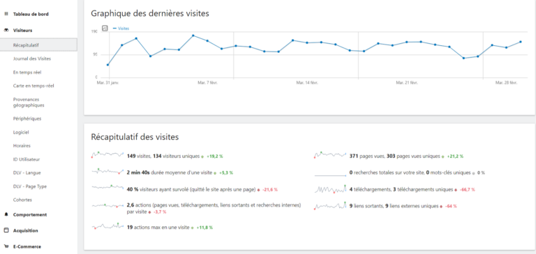 Matomo Analytics répondra parfaitement aux besoins d’un site vitrine. L’outil peut être instaléé en mode 100% RGPD compliant, et donc se passer de CMP. L’outil est simple, et nécessite peu de customisation. On obtient facilement des statistiques exploitables sur les sources d’acquisition et la fréquentation des pages du site, par exemple. Les possibilités d’analyse sont très limitées, mais Matomo convient aux équipes qui ont besoin d’un suivi de volume de trafic et de quelques actions de conversions.
